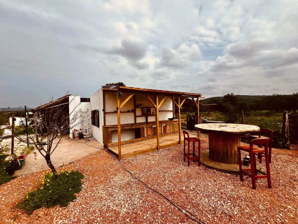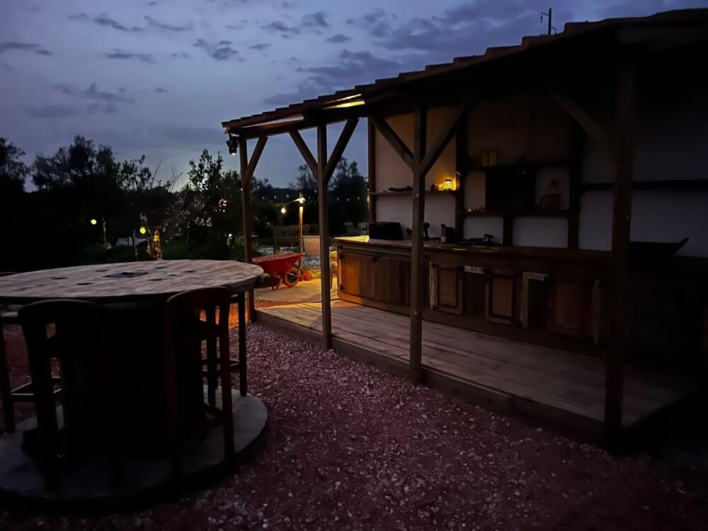 Der Wohnwagen besitzt kein Badezimmer, hat aber eine chemische Toilette. Die Duschen und Sanitär befindet sich in einem Gebäude ebenfalls auf dem Grundstück und sind schnell zu erreichen.