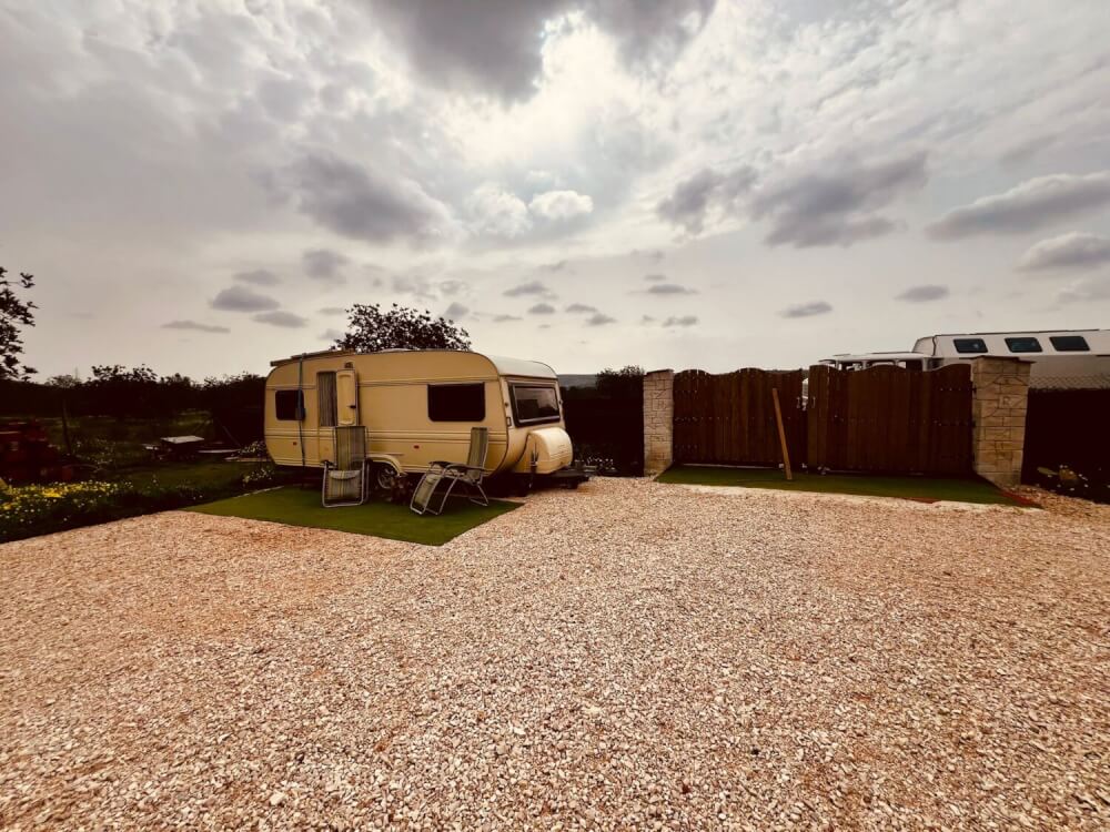 Wohnwagen Tessa steht auf einem privaten Grundstück in Paderne.